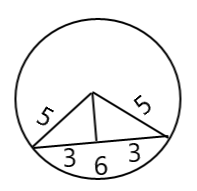 The radius of the circle is the hypotenuse of the right-angled triangle (5 cm).